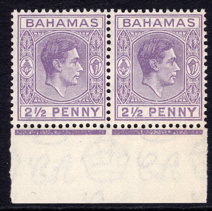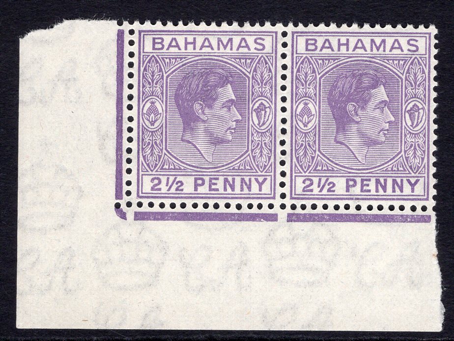 1938-52 2½d violet, SG 153a, bottom left corner horizontal pair containing Row 10/1 "damage to bottom left corner" & bottom marginal horizontal pair showing Row 10/4 "chunk out of curve below King's head" varieties respectively, fine unmounted mint.
